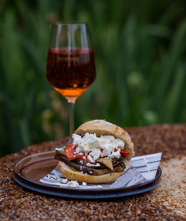 knuspriges Steinofenbun | gegrilltes Gemüse | Fetakäse | Basilikumpesto
